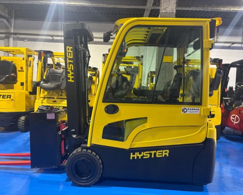 Carretilla eléctrica 3 ruedas HYSTER J1.8XNT LWB 1800 kg 4900 mm. Capacidad 1800 kg. Año 2017. Mástil triple 4900 mm. Altura replegada 2200 mm. 3ª válvula. Touchpoints. Cabinada. Monotrol. Batería 48V 750Ah. Cargador 48V 120Ah. Garantía 6 meses.