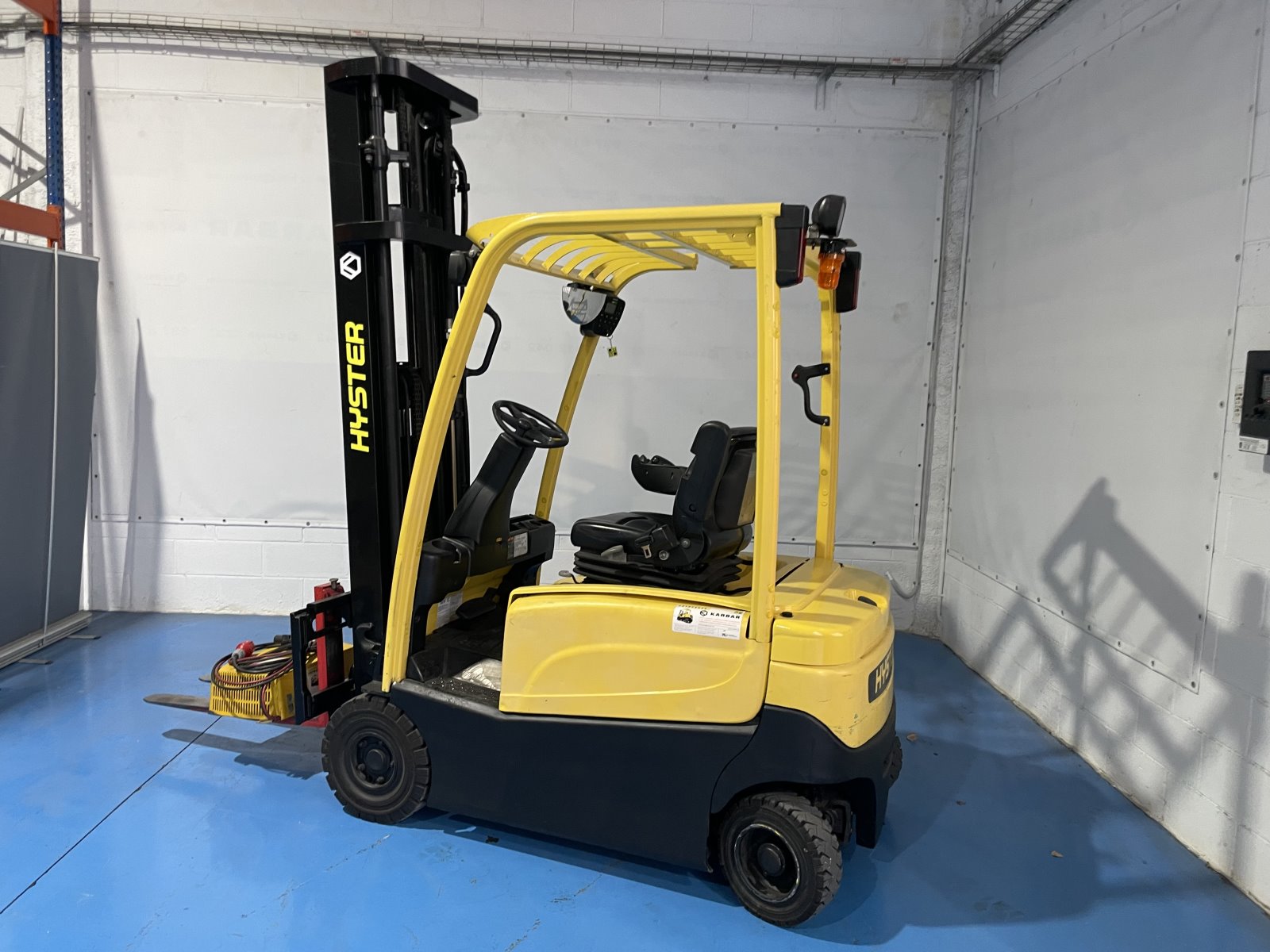 Carretilla eléctrica 4 ruedas HYSTER J2.0XN LWB 2000 kg 5200 mm. Capacidad 2000 kg. Año 2009. Mástil triple 5200 mm. Altura replegada 2280 mm. 3ª válvula. Accionamiento por palancas. Batería 48V 750Ah Eternity Spy Bat NUEVA. Cargador GM 48V 120Ah. Garantía 6 meses.