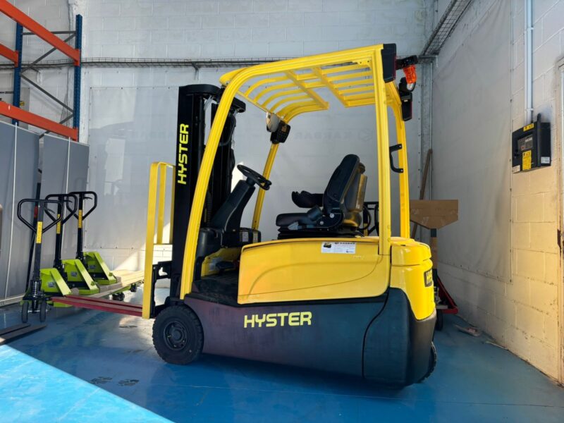 Carretilla eléctrica 3 ruedas Hyster J1.6XNT MWB 1600 kg mástil doble 3.17 m. Capacidad de 1600 kg. Año 2015. Mástil doble 3170 mm. Altura replegada 2050 mm. Funciones 3ª válvula. Accesorios Touchpoints / Monotrol. Batería seminueva 48V 750Ah. Cargador 48V. Garantía 3 meses.