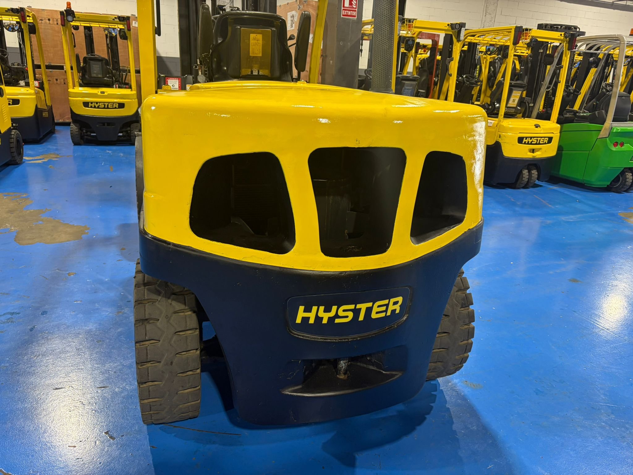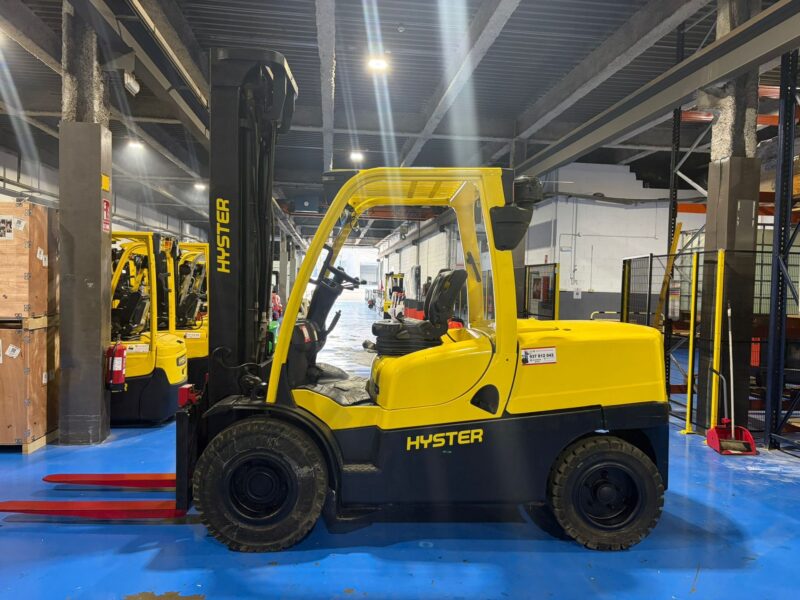 En KMJ Forklift trabajamos con maquinaria industrial seleccionada para ofrecer soluciones fiables en manutención y logística pesada. Disponemos de carretillas diésel como la Hyster H5.5FT de 5.500 kg, ideales para operaciones exigentes en exterior y cargas pesadas.