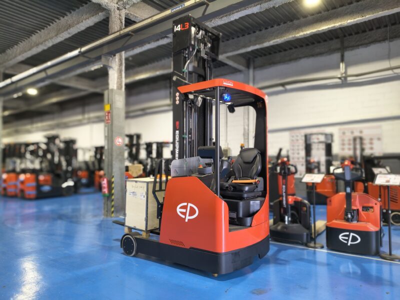 La carretilla retráctil EP CQD14L3 PRO de 1.400 kg es una solución avanzada para la manipulación de cargas en almacenes de alta densidad, especialmente indicada para trabajar en pasillos estrechos y con estanterías de gran altura. Su configuración permite optimizar el espacio disponible y mejorar la eficiencia en operaciones logísticas exigentes.
