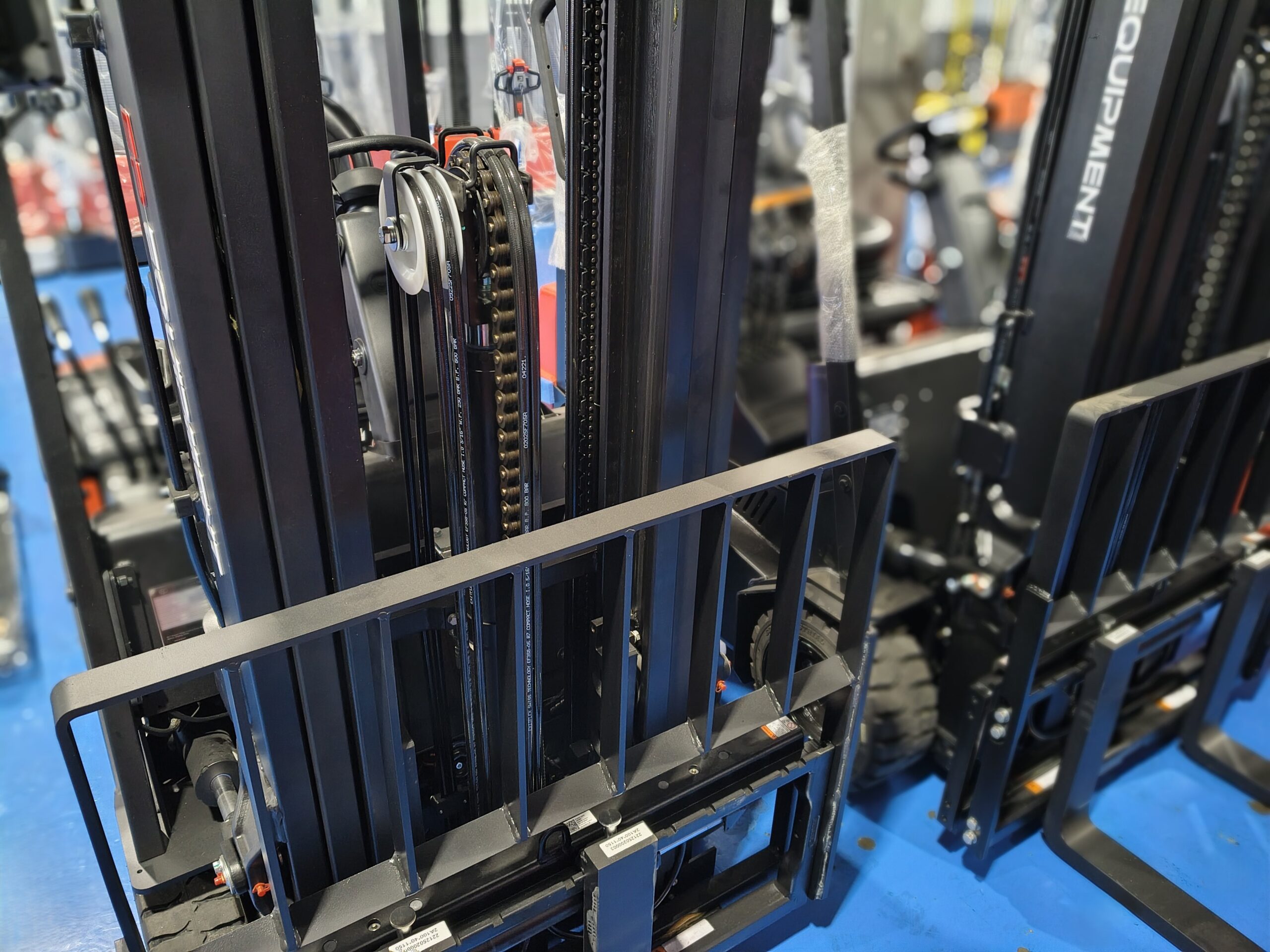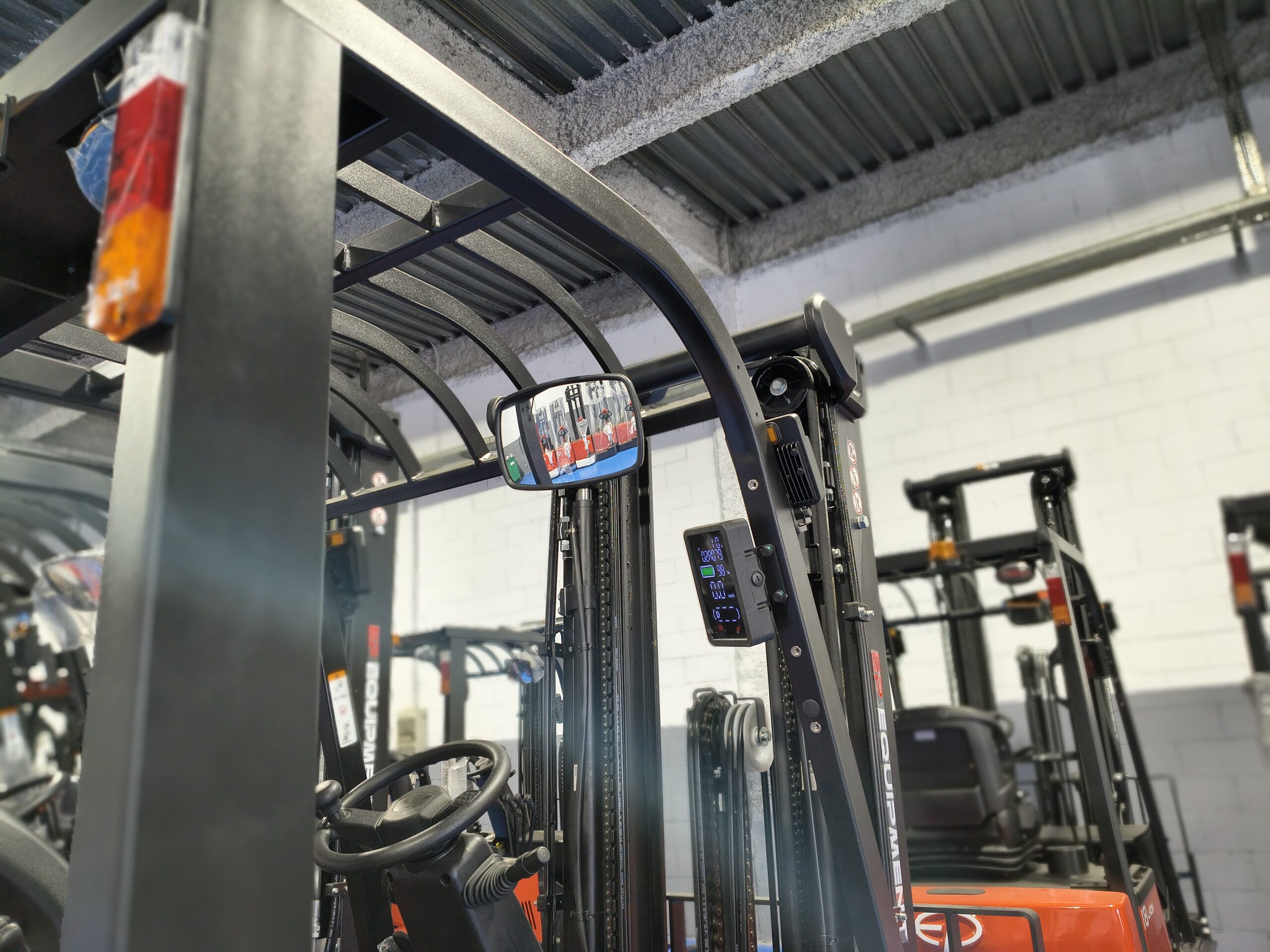 Equipa batería de 80V 150Ah junto con cargador monofásico de 35Ah incluido, lo que facilita su uso en instalaciones estándar. Incorpora doble motor de tracción de 2 x 5 kW y motor de elevación de 11 kW, ofreciendo un rendimiento equilibrado tanto en desplazamiento como en elevación. Presenta una altura replegada de 2.305 mm y una elevación libre de 1.595 mm, permitiendo trabajar en zonas con limitaciones de altura. Su radio de giro reducido (Ast de 3.300 mm) refuerza su operatividad en espacios reducidos.