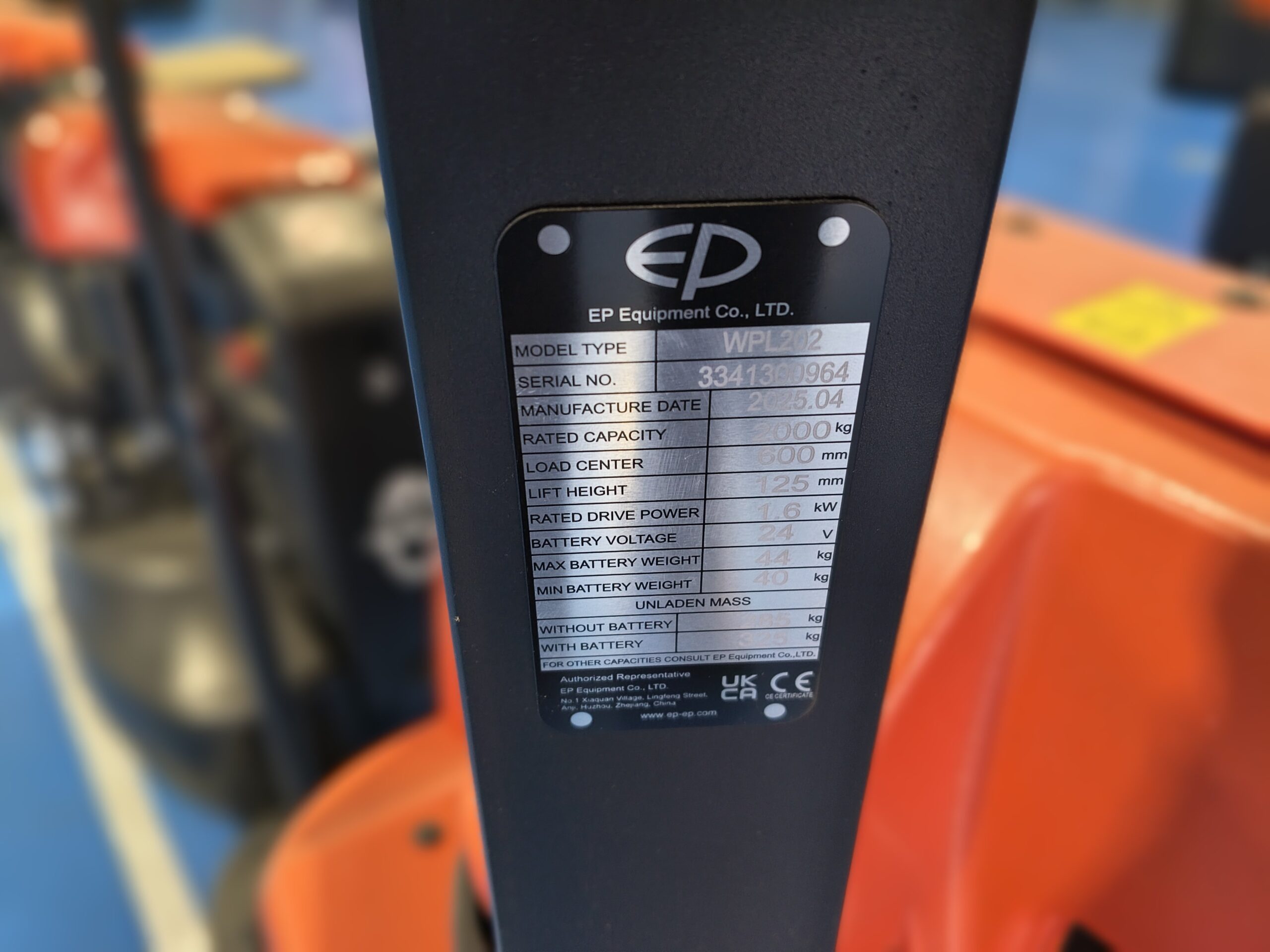 Transpaleta eléctrica 2000 kg WPL202. Capacidad de 2.000 kg, batería de litio 24V 100Ah y cargador integrado de 30Ah, que permite una carga rápida en enchufe convencional. Sin ruedas de carga. Peso 120 kg. Elevación 205 mm. Velocidad con/sin carga: 5,0 / 5,5 km/h. Pendiente máxima con/sin carga: 10 / 16 %. Horquilla de 1.150 mm. Ancho 540 x 714 mm. Radio de giro 1.635 mm. Motor de tracción/elevación: 1,6 kW / 0,8 kW.